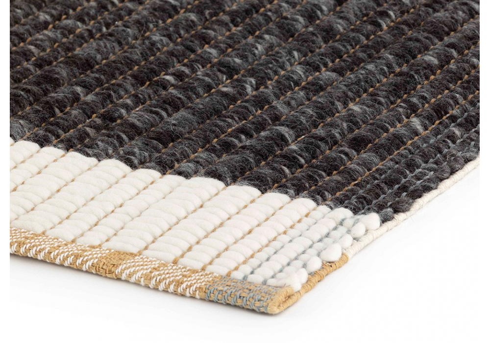 Reversible Black designed by Charlotte Lancelot for Gan is a rug made by combining yarns of different thicknesses and materials, 100% virgin wool on one side and linen on the other.