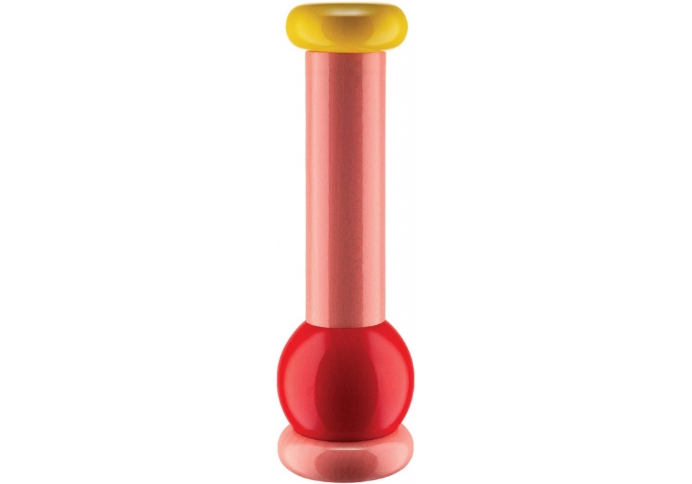 MP0210 designed by Ettore Sottsass for Alessi is a salt, pepper and spice grinder in beech-wood.Available in three colours combinations.
