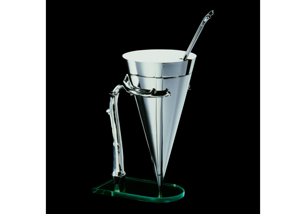 Labrador designed by Andrea Branzi for Memphis Milano is a sauce-boat in silver-plated brass or 925 silver.