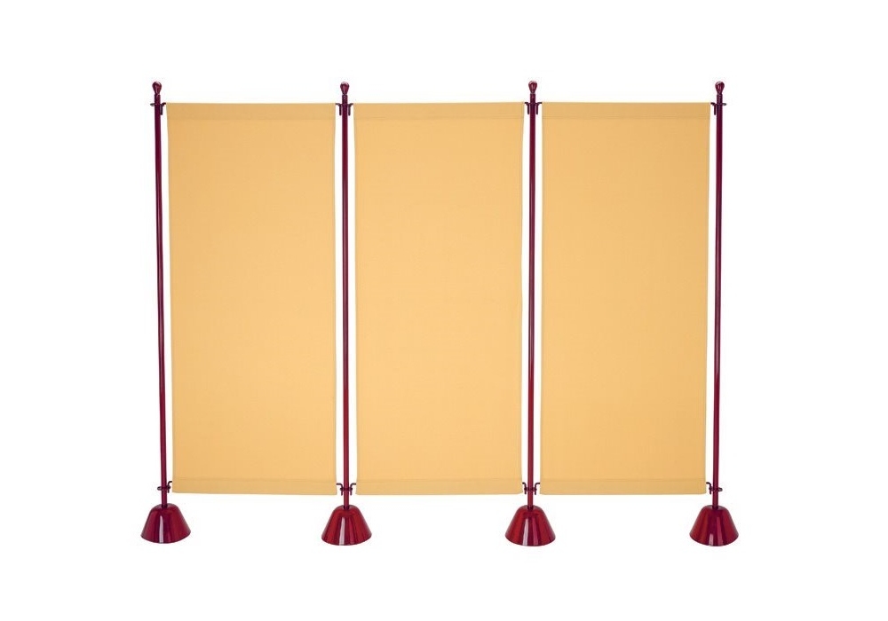 527 Servento designed by Achille Castiglioni for Zanotta is a screen made with a painted polypropylene base, a painted steel support rod and a woolen cloth, measures 66 x 150 cm. Available in different finishes.