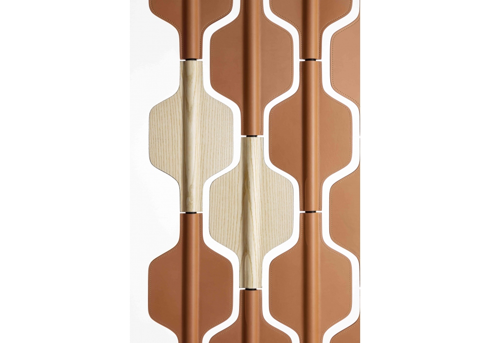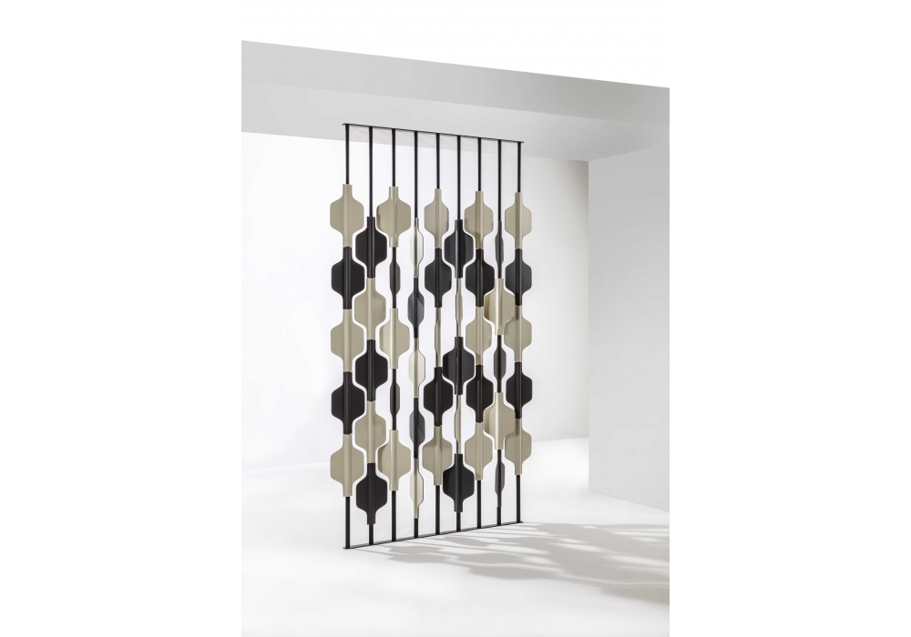 Ro designed by Mia Cullin for Enrico Pellizzoni is a modular and modular room divider with painted aluminum structure and revolving modules. Available in different finishes and sizes.