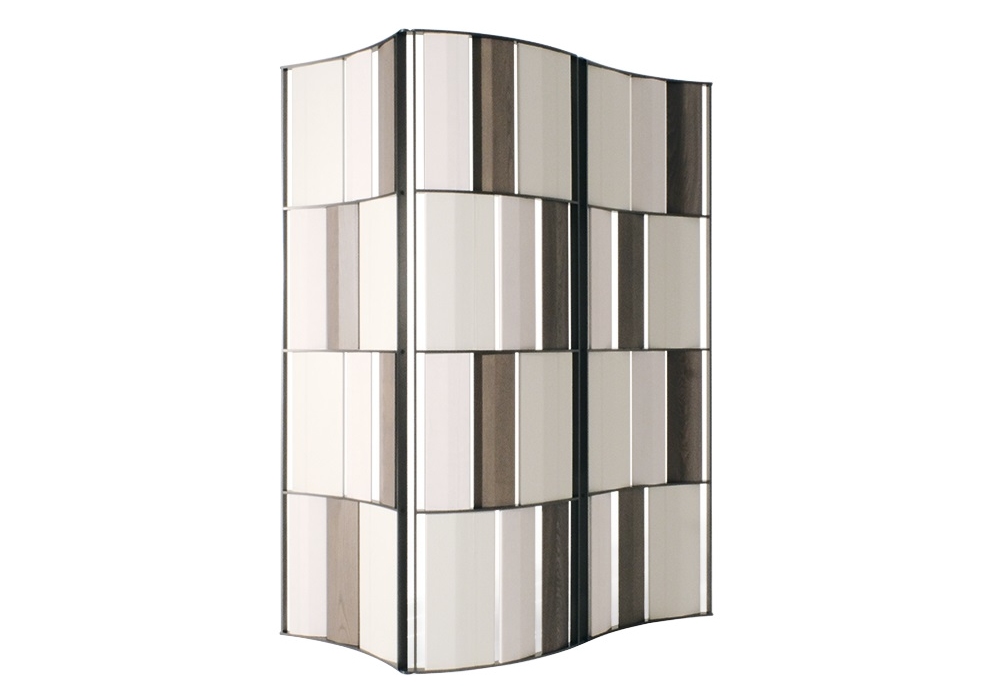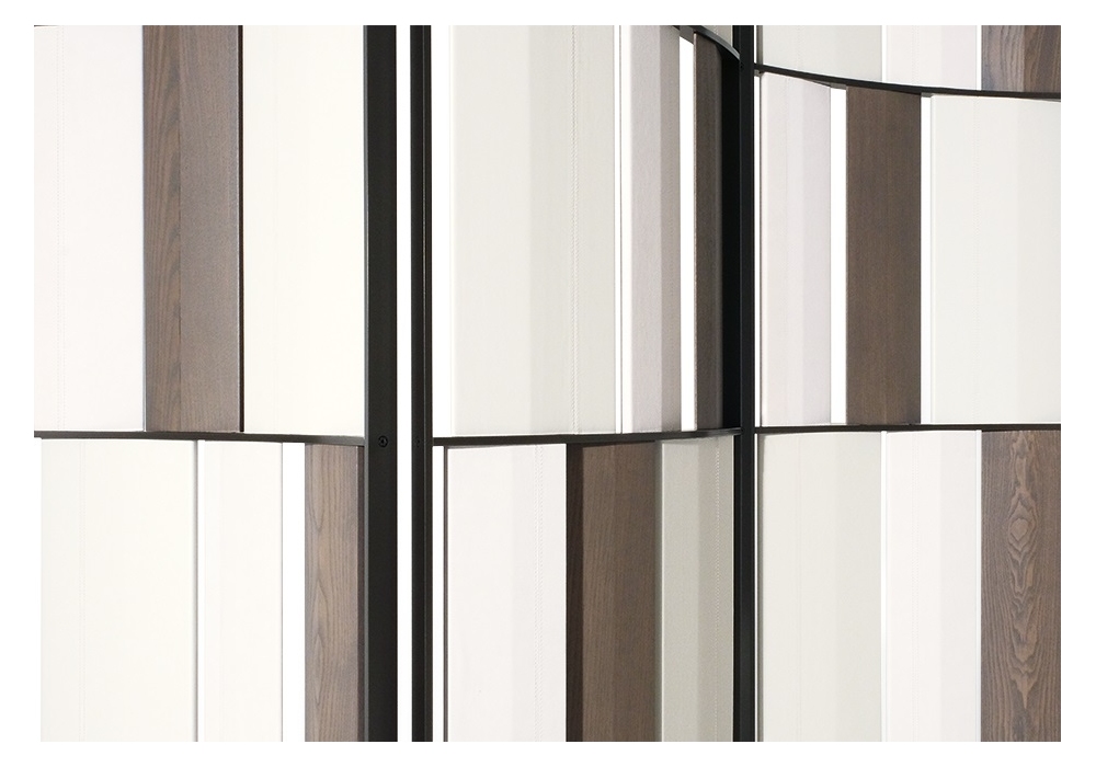 Kiranami designed by HBA for Giorgetti is a screen made of painted aluminum composed of three types of leather and ash tiles.