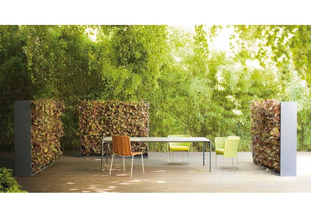 Greenery Paola Lenti Green WallGreenery designed by CRS Paola Lenti is a vertical plant wall designed for dividing and decorating outdoor spaces. The vertical surfaces consist of removable plant containers. Double-sided structure in painted steel in different finishes.