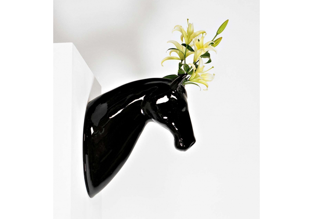 Horse designed by Jaime Hayon for Bosa is a sculpture in ceramic to hang on the wall, a decorative object that can also be used as a vase. Available in different finishes.