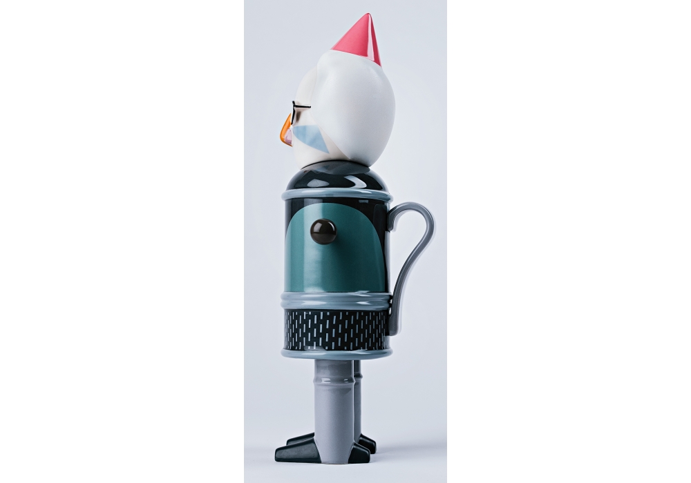 Most Illustrious Riccardo designed by Elena Salmistraro for Bosa is a sculpture made of glazed ceramic in a grey finish with details in green and pink. Most Illustrious is a collection that includes three other sculptures: Alessandro, Michele and Achille.