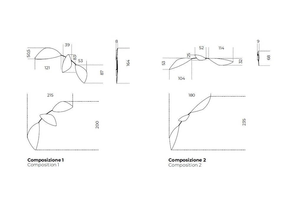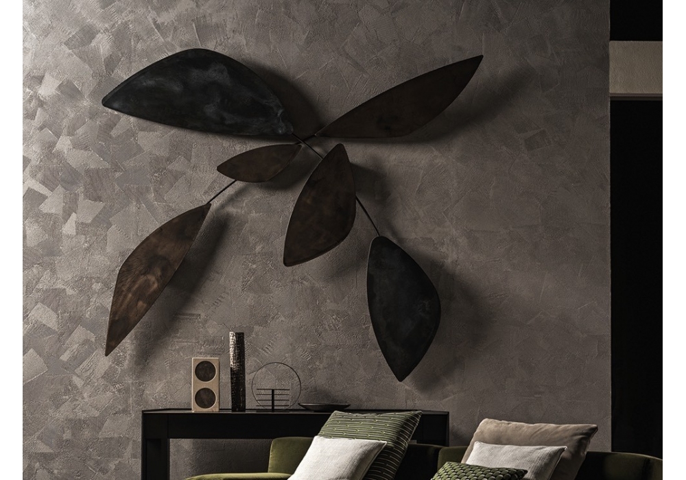 Leaf Sculpture designed by Ricardo Bello Dias for Gallotti&Radice are sculptures in liquidmetal lacquered glass in the colour Lava and Avana. Fixed on panels on different tilts. Available single or as per standard compositions. Burnished metal joint structure.