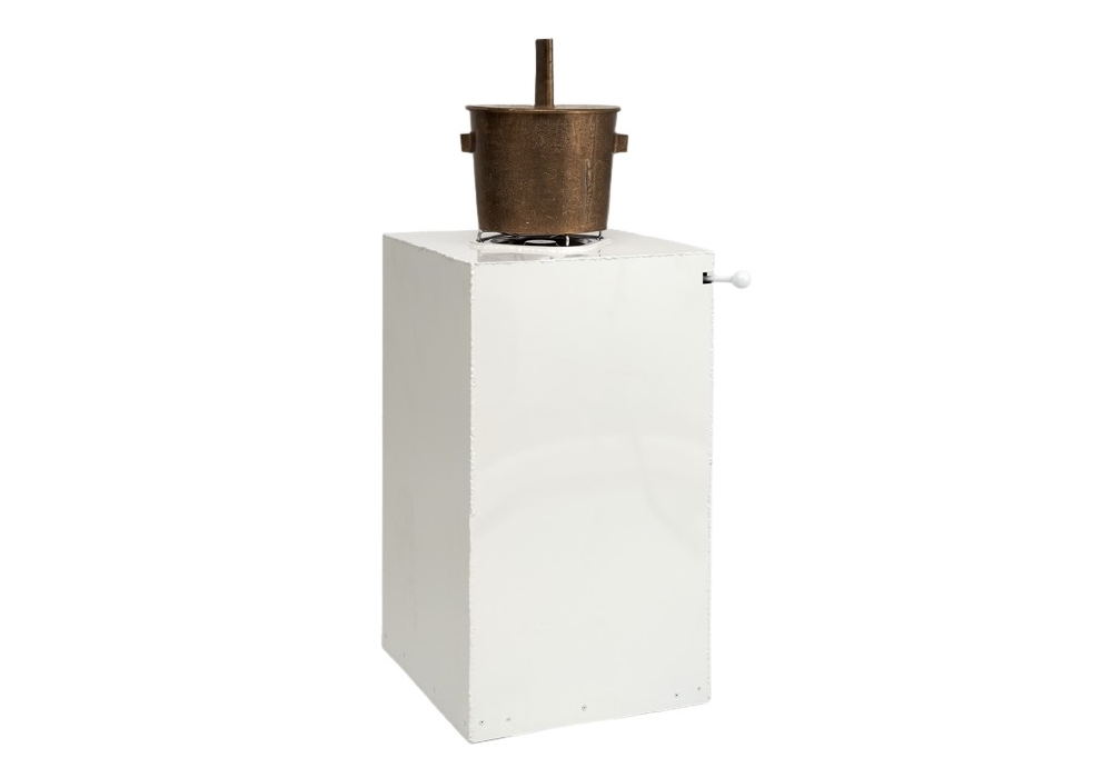 Caldare designed by Franz West & Mathis Esterhazy for Memphis Milano is a pot with base in white painted iron with stove.