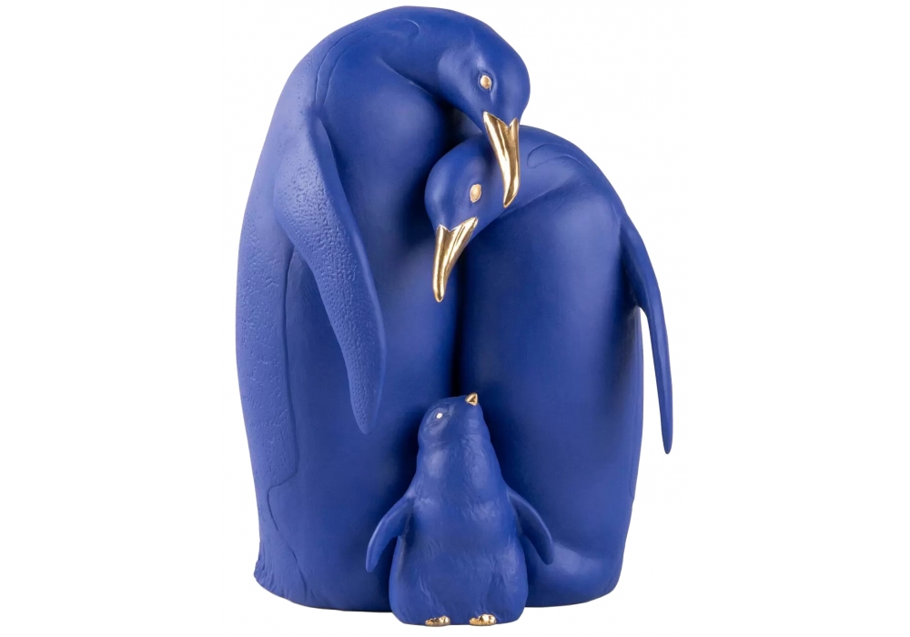 Famiglia di Pinguini designed by José Javier Malavia for Lladró is a porcelain sculpture in blue and gold finish, entirely made and hand painted by the Lladró artists. Famiglia di Pinguini is a limited edition sculpture.