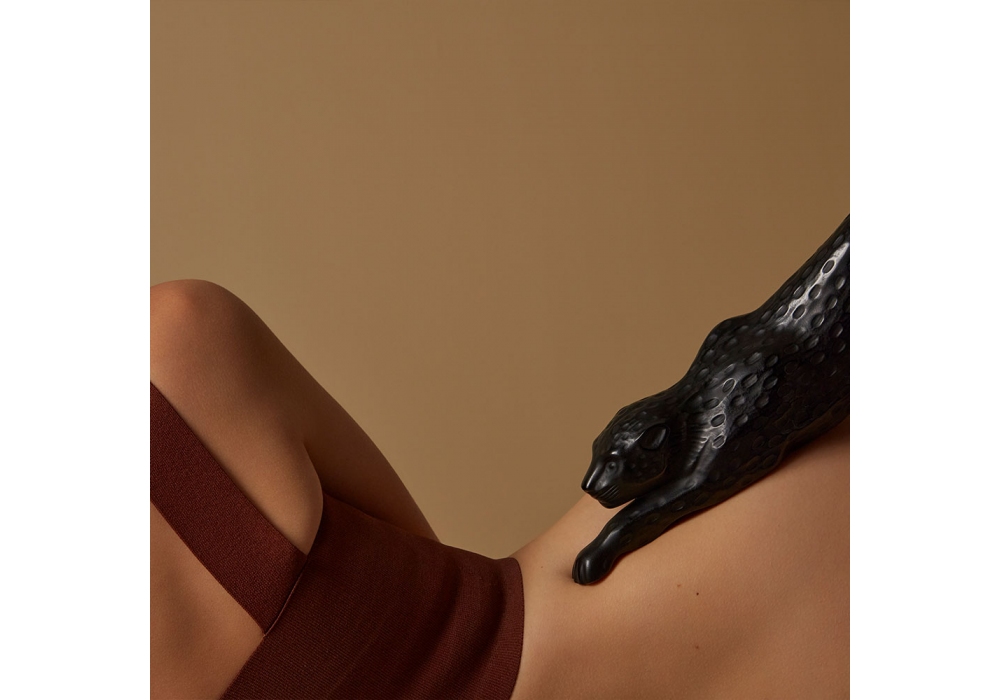 Zeila Panther designed by Marie-Claude Lalique for Lalique is a panther-shaped sculpture handcrafted in crystal. Available in different finishes.