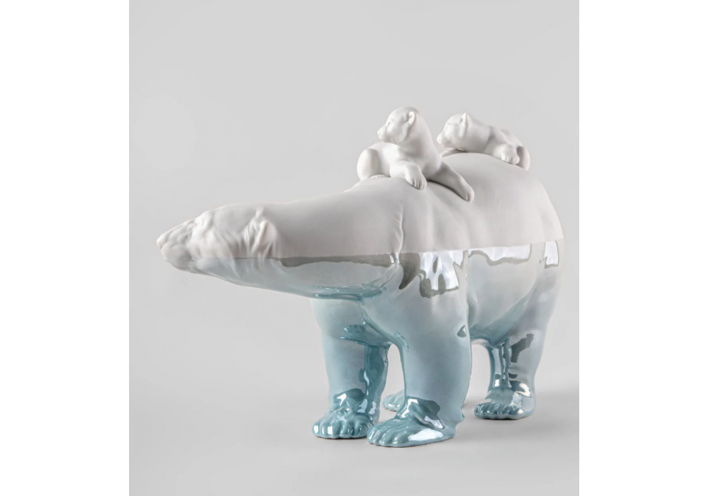 Mummy Bear and Babies Underwater by Virginia González for Lladró is a porcelain sculpture in both glossy and matte finish, entirely made and hand painted by the Lladró artists.