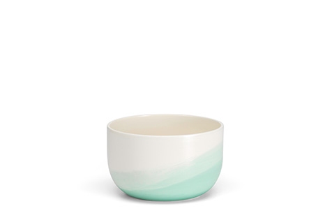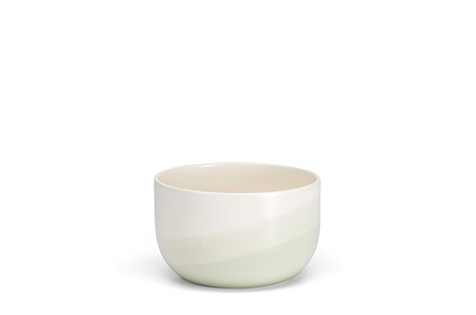 Herringbone Vessels designed by Raw-Edges for Vitra is a collection of hand-dipped stained glazed ceramic bowls, vases and trays. The bowl is available in mint and sand colors.