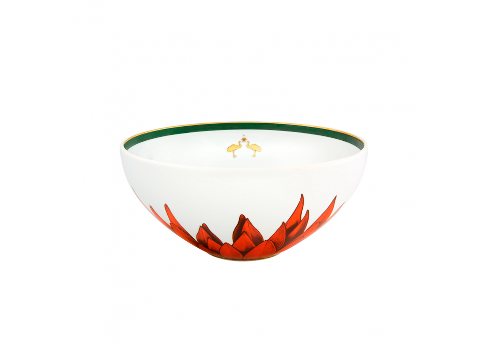 Amazonia designed by Vista Alegre with Ecoarts is a porcelain salad bowl with decorations inspired by flora and fauna.