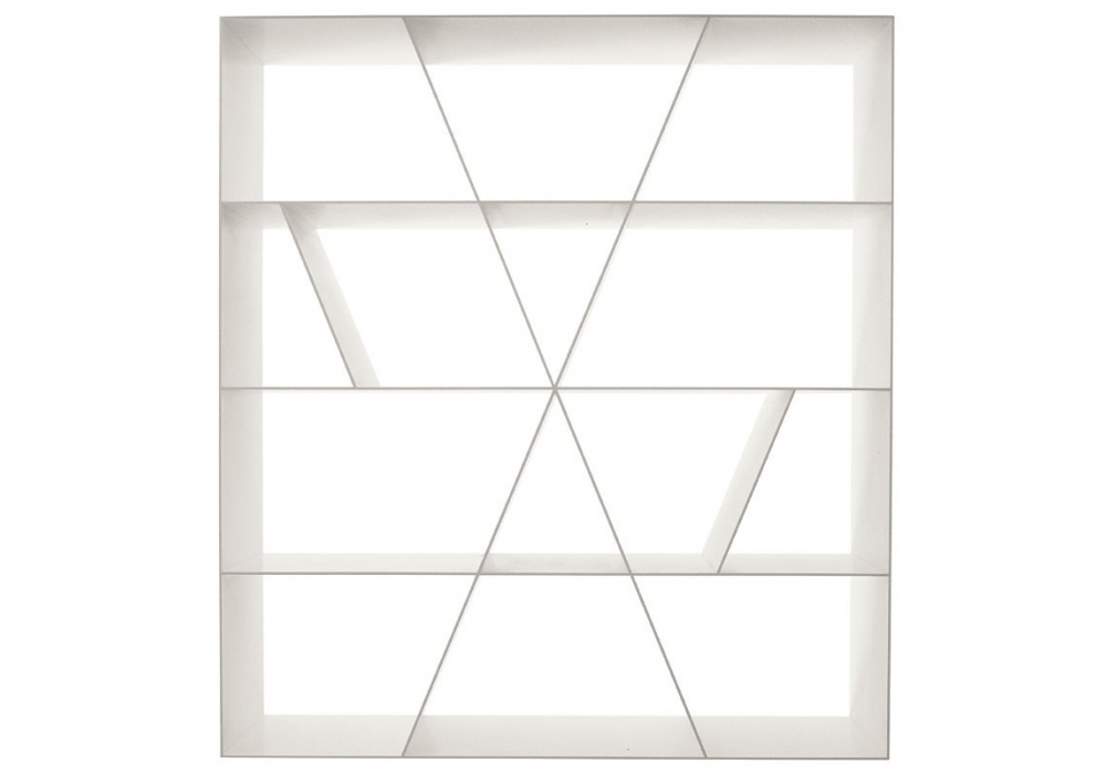 Shelf X designed by Naoto Fukasawa for B&B Italia is a bookcase with a white DuPont™ Corian structure. The product is customized with the designer's signature and the B&B Italia logo.