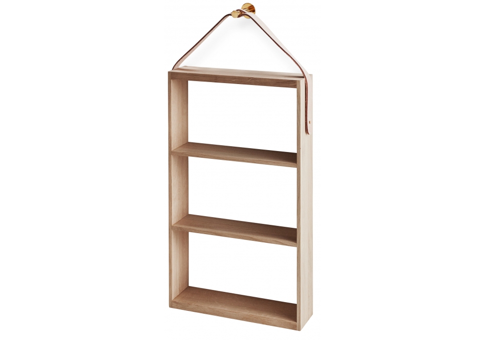 Norr designed by Ditte Buus Nielsen for Skagerak is a shelf made in oak, parts in leather and details in brass.
