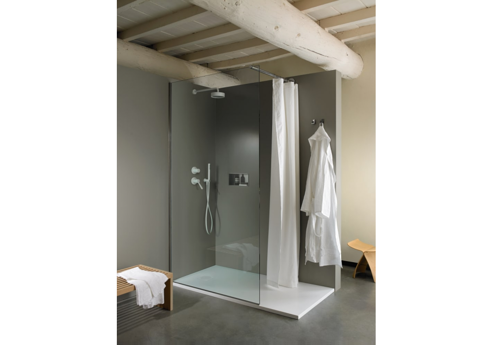 PDX produced and signed by Agape is a shower tray made of matt white Ceramilux®. The siphon with drain cover plate in white painted steel is included. Available with lateral or central basin.