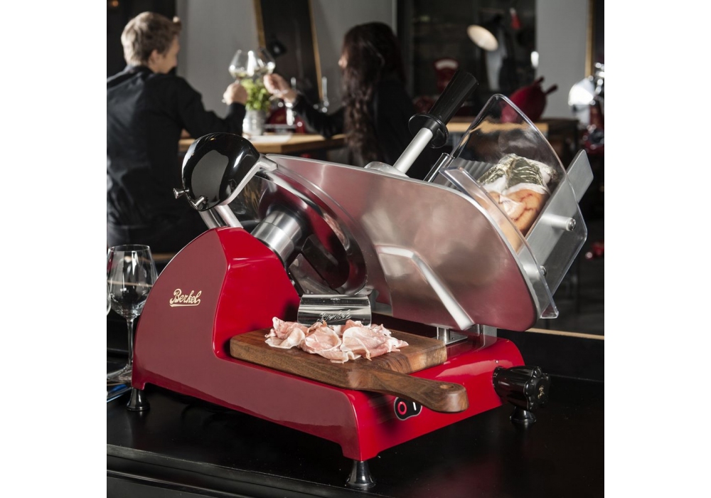 Red Line 300 designed by Berkel is a slicer made of steel. Also available in 4 finishes: red, black, grey teflon, white.