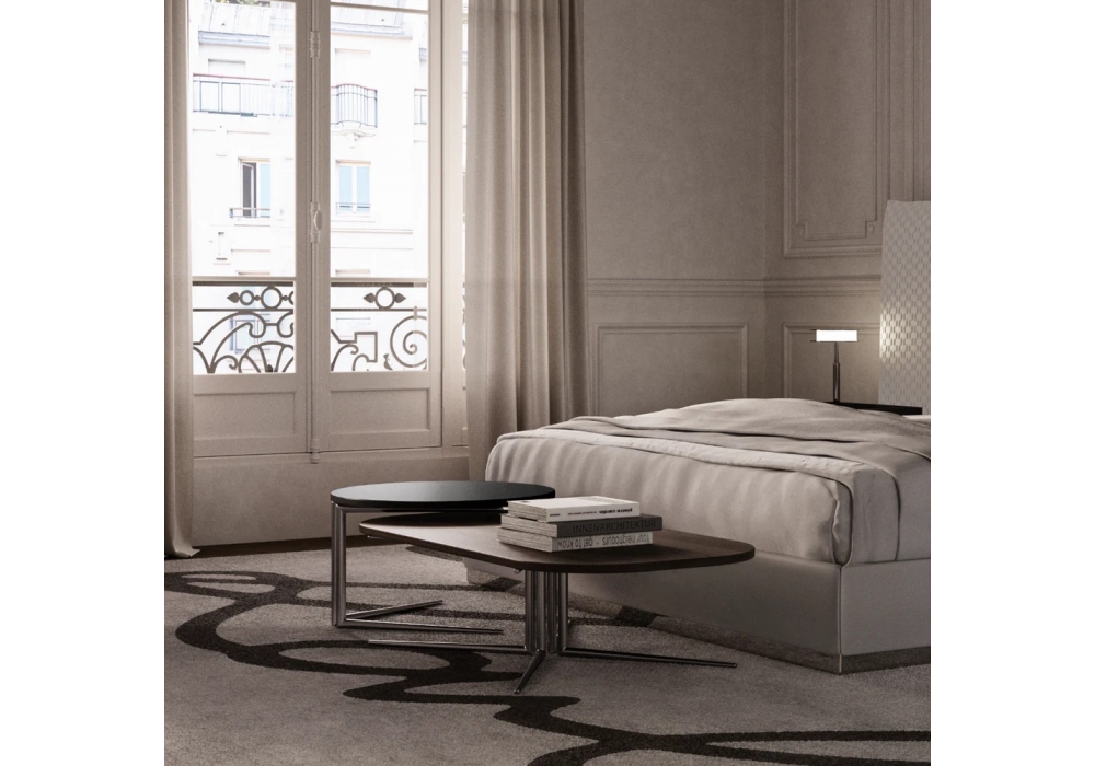 Saint-Guillaume designed by Matteo Nunziati for Karl Lagerfeld Maison is a coffee tables collection with lacquered or wooden top and metal structure. Available in three dimensions.
