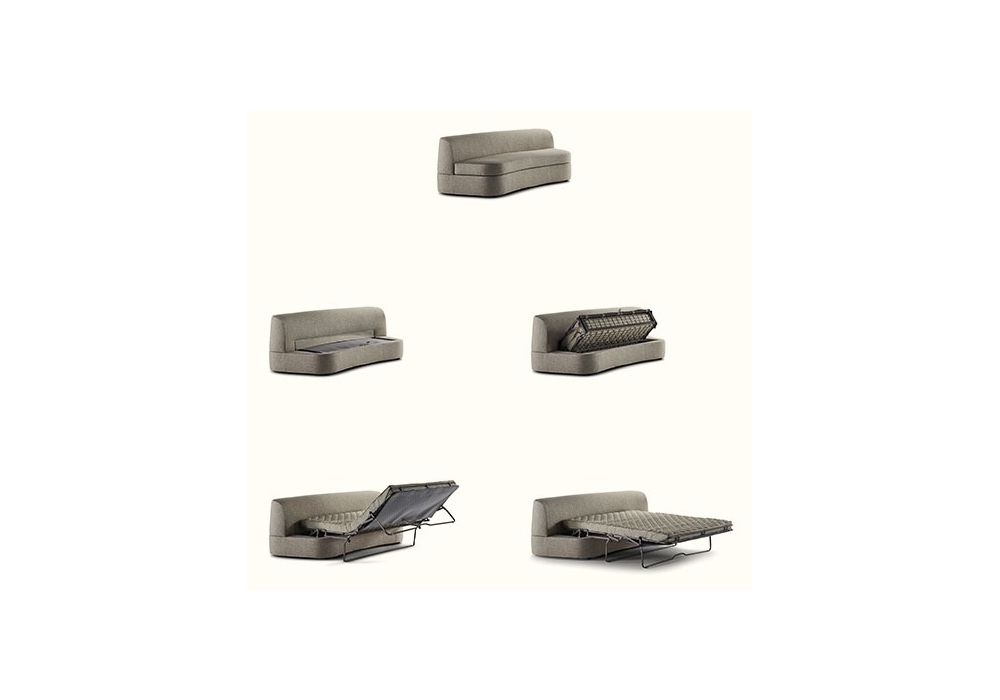 Goodman designed by Alessandro Elli for Milano Bedding is a fabric-upholstered sofa bed that offers a refined furnishing solution combining elegance and functionality. Designed to enhance large living spaces, the Goodman sofa bed boasts a versatility that makes it suitable for various configurations. Thanks to its curved and sinuous silhouette, Goodman exudes elegance and modernity, becoming the undisputed protagonist of home decor, ideal for those who love to combine aesthetics and functionality in a single design solution. Electro-welded steel mesh base, secured to the frame with springs. Mattress included. Decorative cushions not included.