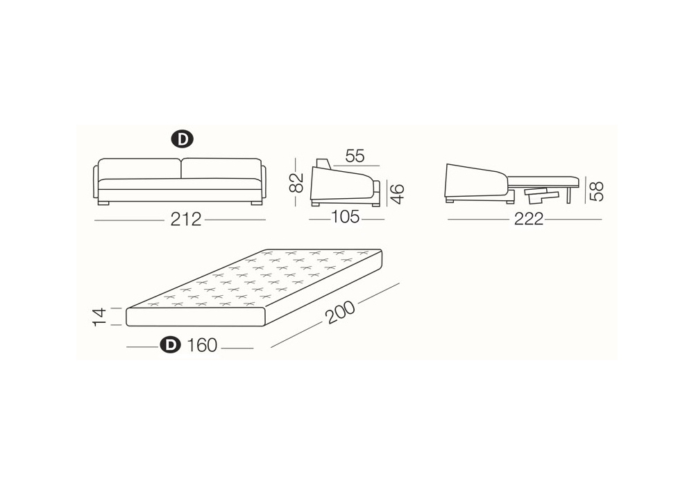 | Mattress size | 160 x 200 x H 14 cm |