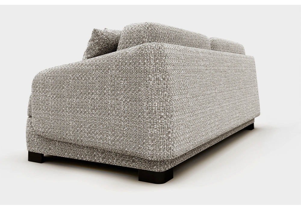 Vivien designed by Alessandro Elli for Milano Bedding is a fabric-upholstered sofa bed featuring an innovative Lampolet mechanism, the sofa transforms into a comfortable bed with a 160x200 cm mattress simply by rotating the backrest, without having to remove the cushions. This sofa bed features a unique design, where the curved line of the backrest extends into the armrests, combining aesthetics and function in a single solution. The Vivien's frame is enhanced by metal feet with a black nickel finish, lending the sofa a touch of contemporary elegance. Electro-welded steel mesh base, secured to the frame with springs. Mattress included. Decorative cushions not included.