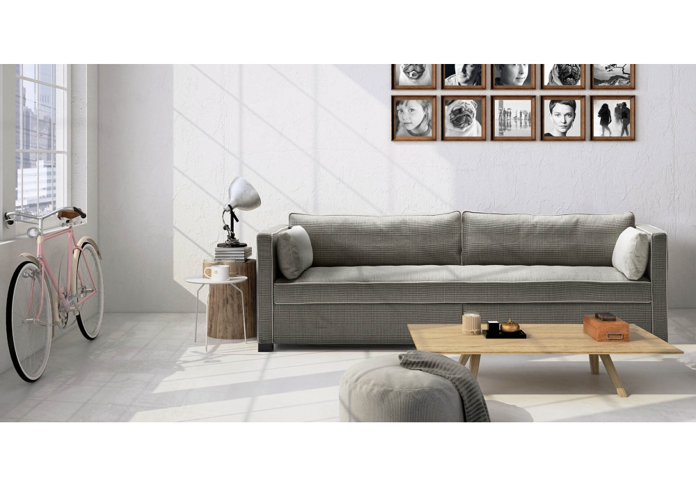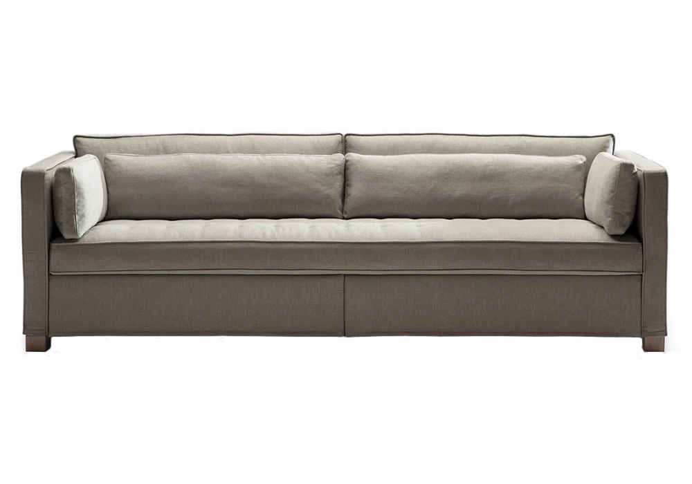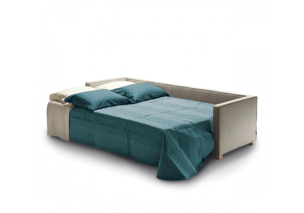 Andersen designed by Milano Bedding is a fabric-upholstered sofa bed with wooden legs. Thanks to its timeless lines, Andersen meets every design need. The seat cushion converts into a single bed; through a simple Lampolet mechanism and by removing only the feather-filled back cushions, which make the sofa bed very comfortable, it transforms into a double bed with transverse sleeping position. Pair of lumbar cushions and armrest cushions included. Mattress included.