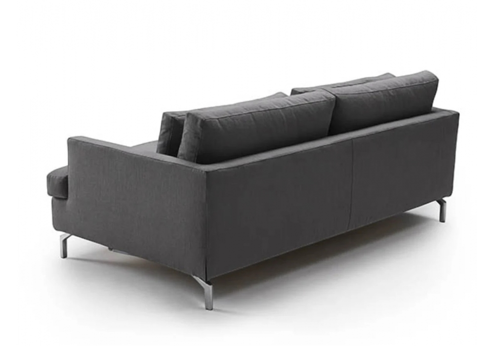 Dave designed by Milano Bedding is a fabric-upholstered sofa bed, perfect to combine functionality and elegance in a single solution, this sofa bed stands out for its Lampolet mechanism, which facilitates its transformation. The Dave sofa bed's frame is slender and sturdy, accentuated by 16 cm high feet, available in polished aluminum or black nickel, which help refine its line. Pair of lumbar cushions included. Mattress included.