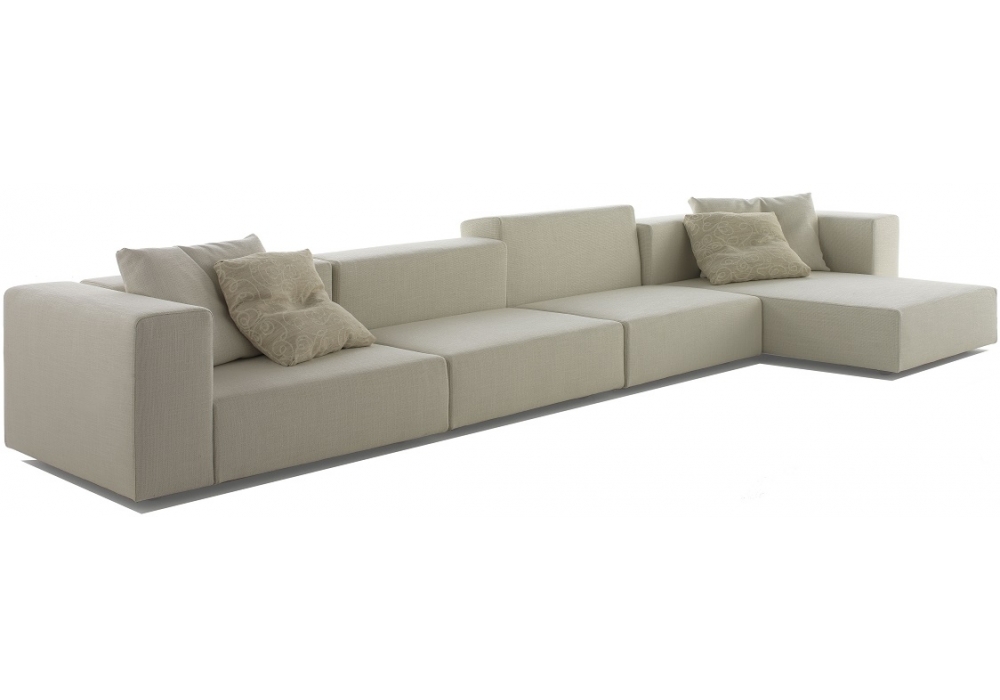 The Wall sofa designed by Piero Lissoni for Living Divani has a distinctive, regimented style featuring a square design and prominent corners. The seats, backs and arms of Wall are innovatively dimensioned and form the elements that can be freely mixed and matched to shape and outline the product. Modular elements with frame in double-paneled poplar and pine. Support in cross-woven, coated rubber elastic straps. Padding in differentiated density polyurethane foam. Covering in needle punched, resinated, nonwoven polyester fibre, bonded onto a polyamide velveteen backing. Black adjustable PVC feet (Wall). Fabric or leather upholstery. The fabric version only is fully removable by Velcro fastenings. The various elements are joined together by means of hooks. Seat depth 68-94cm.