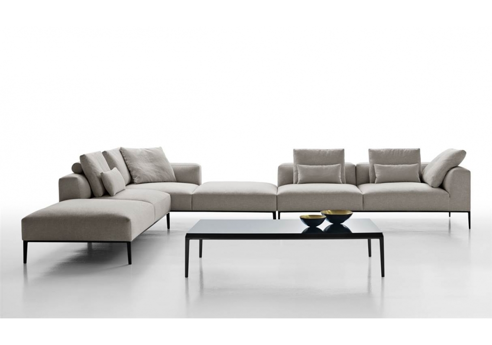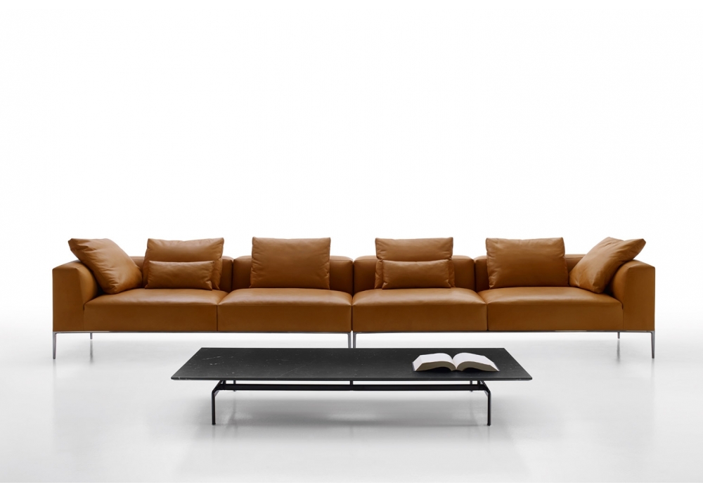 Michel Effe designed by Antonio Citterio for B&B Italia is a modular sofa with a brushed or painted aluminum structure and upholstery in different fabrics or leathers.