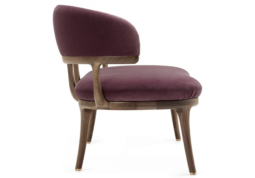 Peggy G designed by Roberto Lazzeroni for Ceccotti Collezioni is a small sofa with structure in solid American walnut. Upholstery in fabric, natural leather or leather.