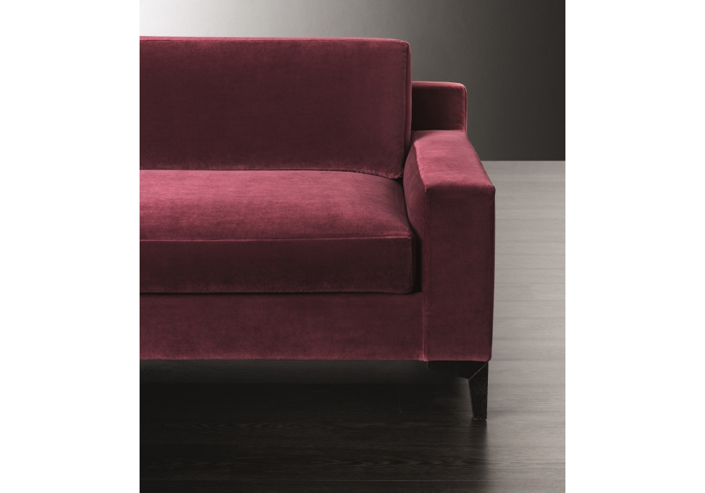 Prince designed by Andrea Parisio for Meridiani is a sofa with wooden frame and non-deformable polyurethane padding. Feet in black, light and almond stained wood. Upholstery available in fabric or leather. Made of different sizes with possibility of different modular configurations.