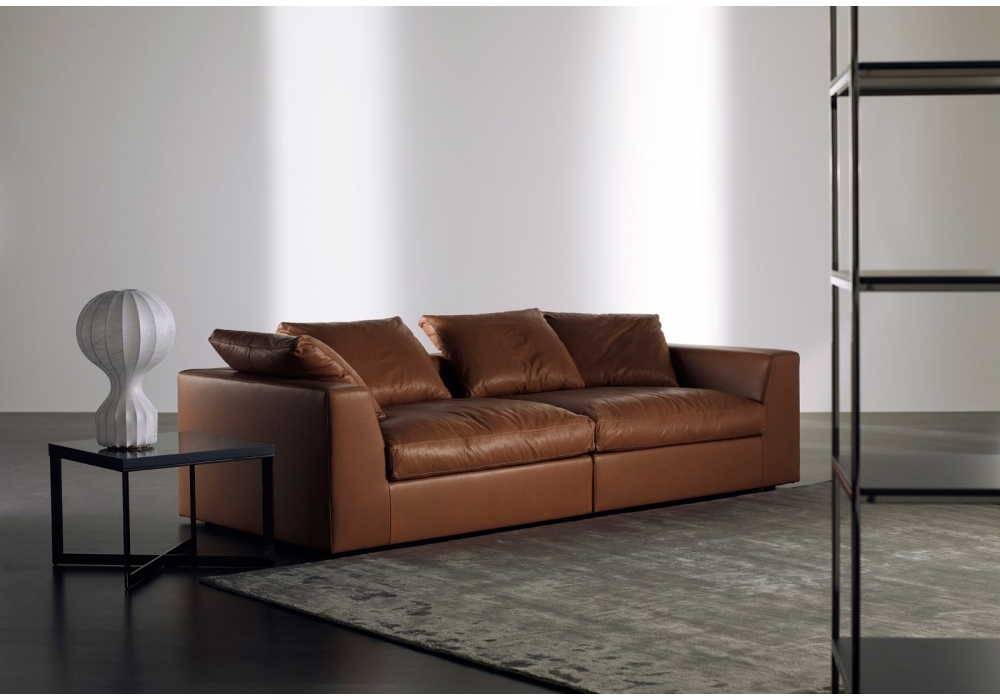 Louis Plus designed by Andrea Parisio for Meridiani is a modular sofa with wooden frame and non-deformable polyurethane padding. Black ABS feet. Upholstery available in fabric or leather. Made of different sizes with possibility of different modular configurations.