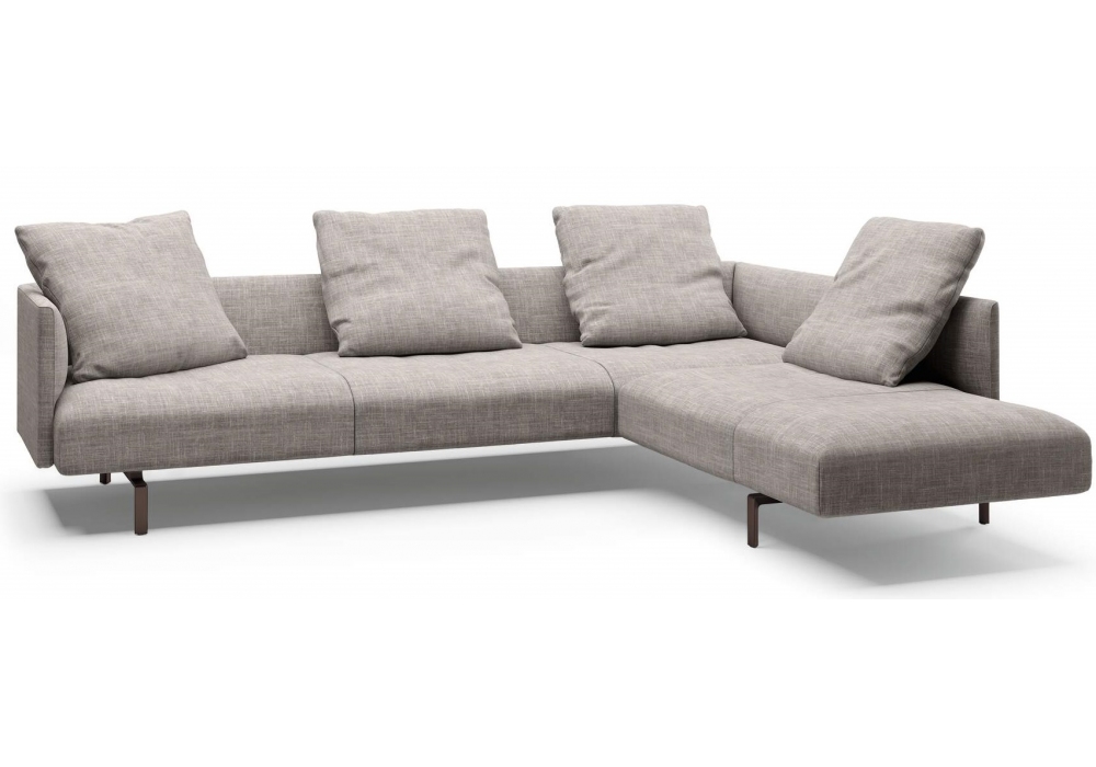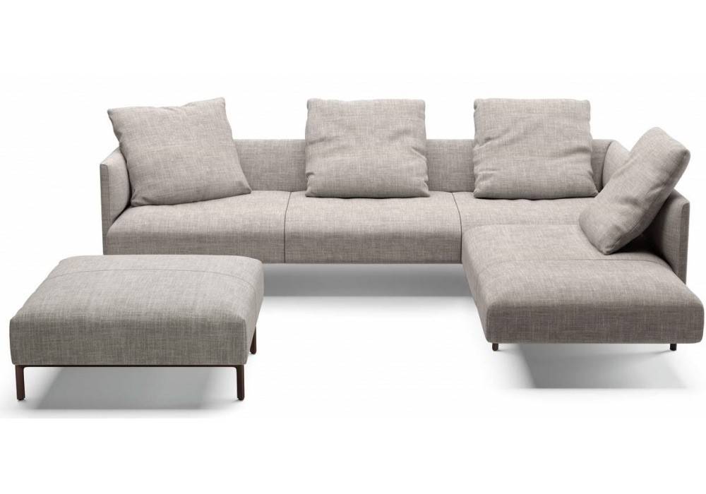 Muud designed by Eoos for Walter Knoll is a sofa with base in polished aluminum or matt bronze powder-coated aluminium or matt black powder-coated aluminium and upholstery available in multiple fabrics or leathers. Synthetic glides for stone and carpet floors, felt glides for wooden floors. Also available in different sizes.
