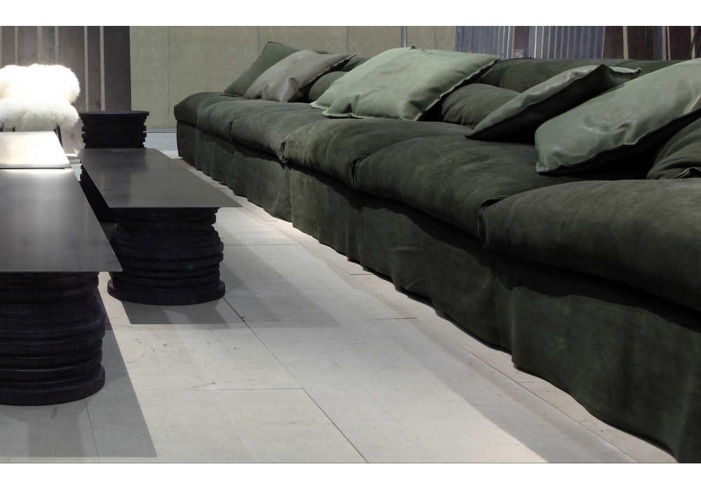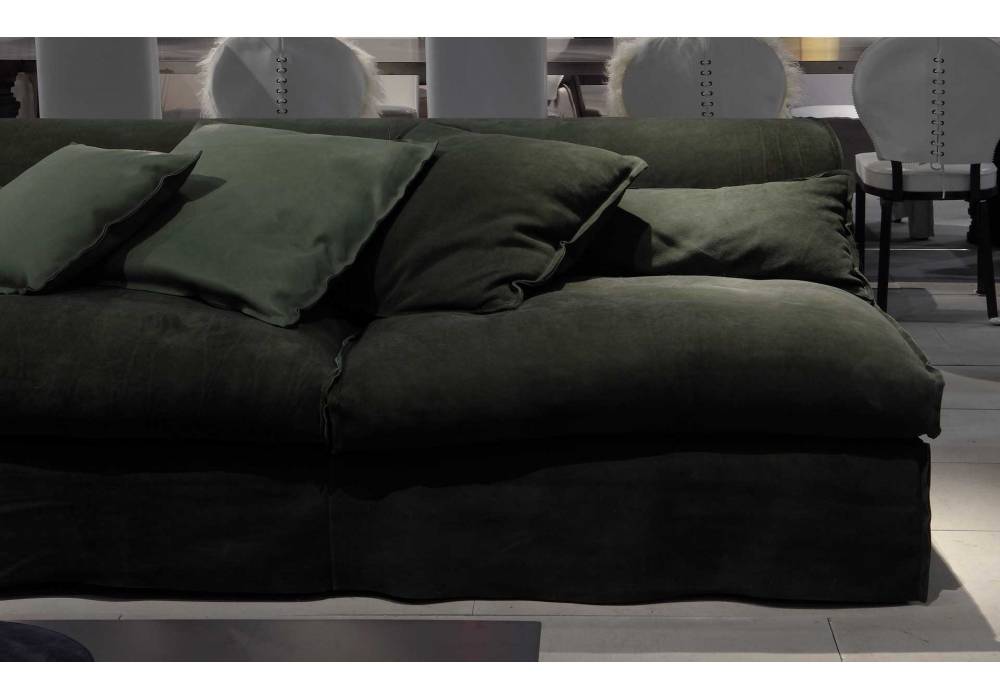 Housse Mono designed by Paola Navone for Baxter is a sofa available in all soft leathers. Frame in honeycomb fir and poplar wood. Feet in walnut-stained beech. Padding in differentiated density polyurethane foam and cover made with acrylic fibre. Spring base with cross-woven, coated rubber elastic straps. Seat cushions and lumbar support in memofil with viscoelastic chips. Leather upholstery with sharp edge stitching.