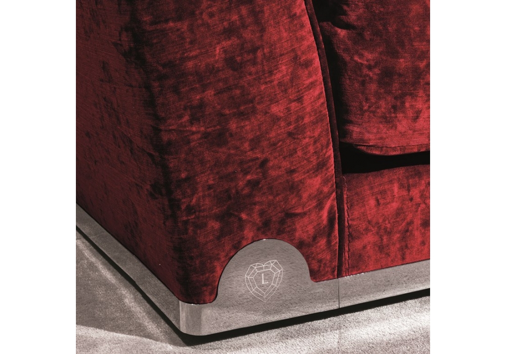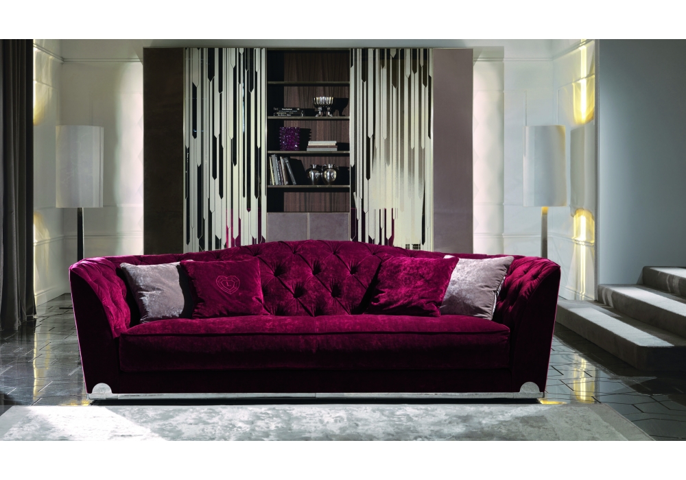 Grace designed by Giuseppe Viganò for Longhi is a sofa with frame in wood with elastic bands, covered in multithickness polyurethane foam. Seat cushion in sterilised goose down with insert in multi-thickness polyurethane foam and reinforcements in "Visco Soft", a particular soft, durable padding. The internal backrest is finished in a "Capitonnè" pattern, with buttons in the same colour as the upholstery or with "Swarovski" crystals. At the base of the sofa, there is a metal border with laser logo in multiple finishes. Also available in 3 different sizes.