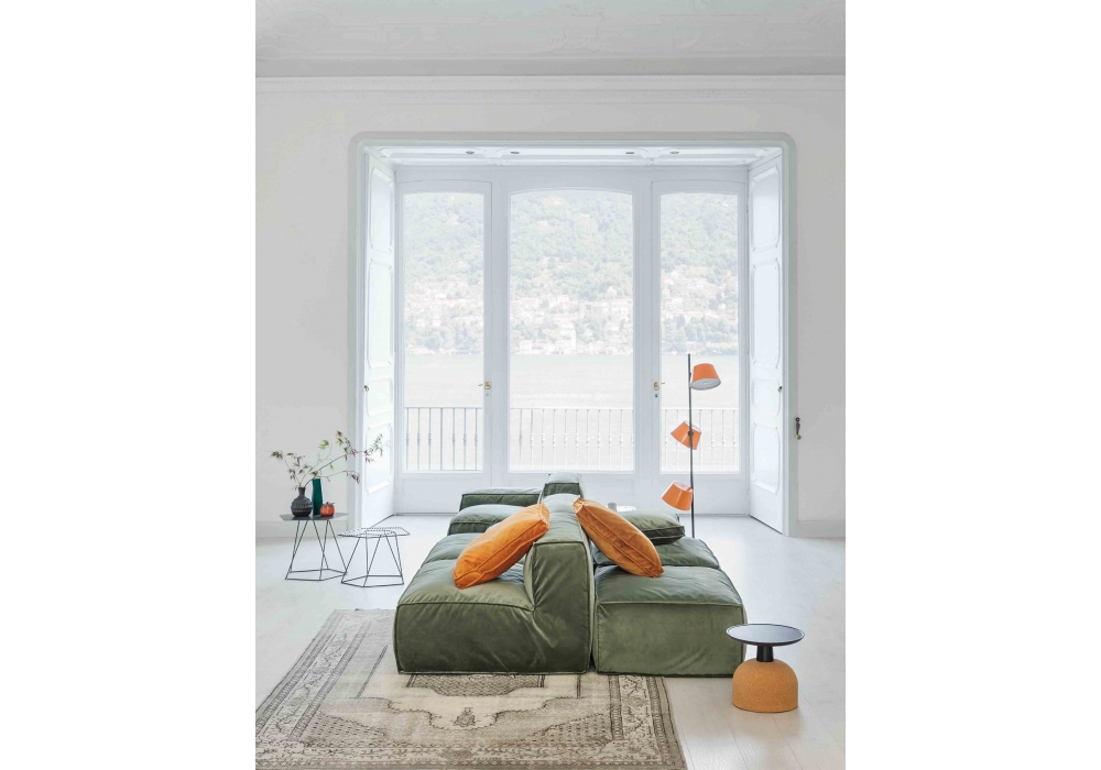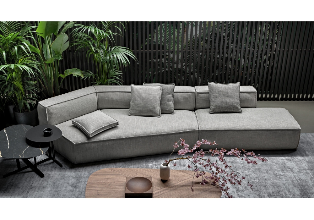 Peanut B designed by Mauro Lipparini for Bonaldo is a modular sofa with completely removable fabric cover, in different finishes. The feet are in anthracite gray painted wood. Available in various compositions.