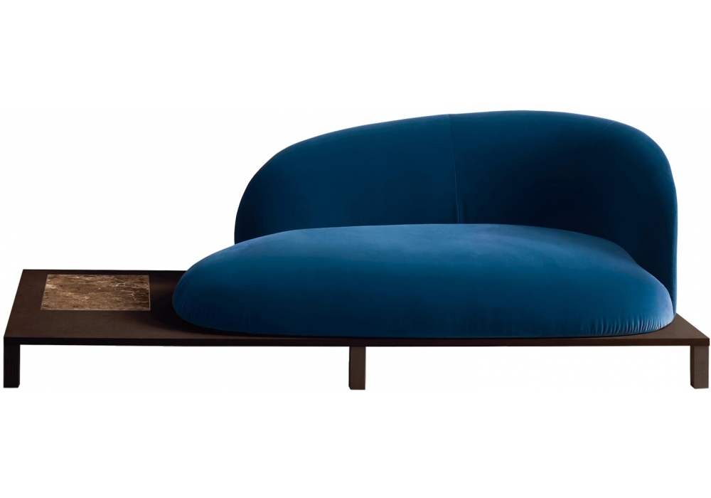 Bonsai designed by Claesson Koivisto Rune for Arflex is a sofa with a chocolate-stained ash structure. White marble insert and fabric upholstery.