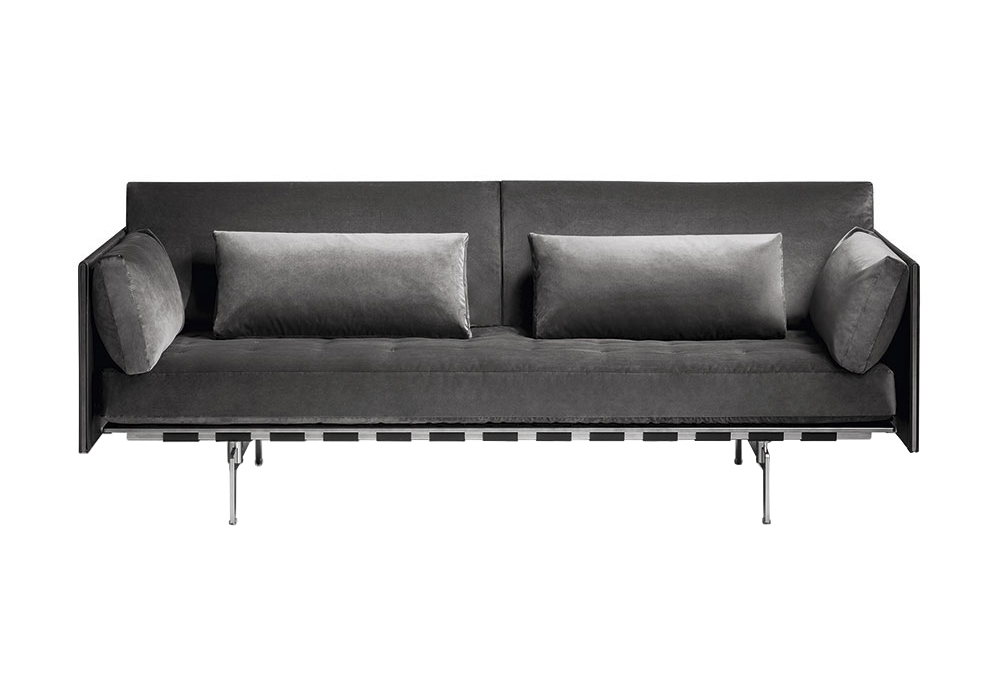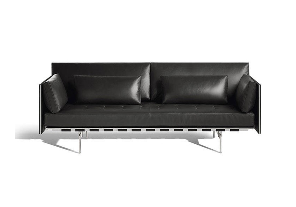 Clayton designed by Jean Marie Massaud for Poltrona Frau is a sofa with steel and aluminum structure and steel feet. Cushions and panels covered in Pelle Frau leather available in different finishes. Also available in 3 models.