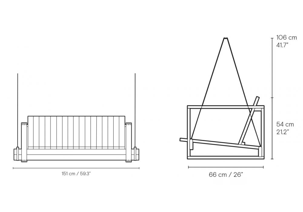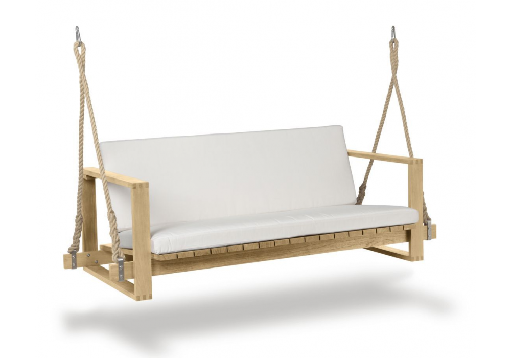 BK13 designed by Bodil Kjær for Carl Hansen & Søn is a swing sofa with a structure made of solid untreated teak. Available with or without cushion. Suspension cord included. Maximum load: 260 kg (2 x 130 kg).