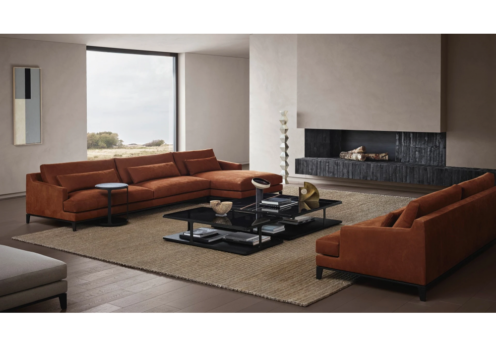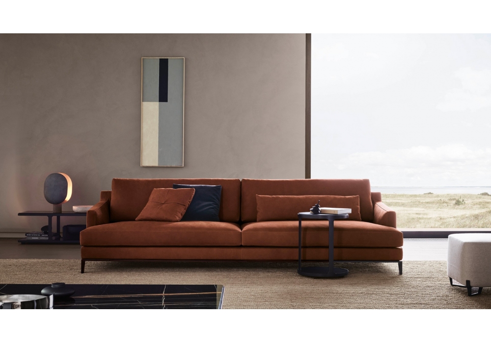Bellport designed by Jean-Marie Massaud for Poliform is a sofa available in a fixed and modular configuration. Legs in matt black painted steel. Removable cover in fabric or leather.