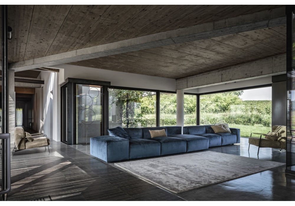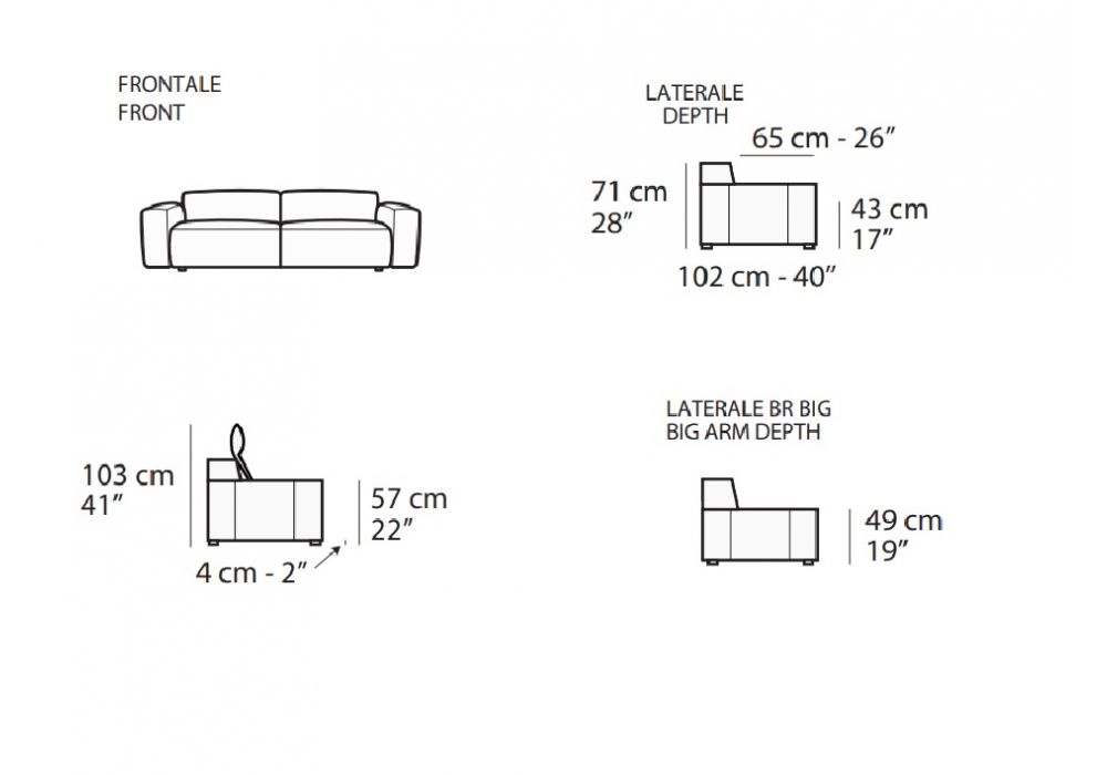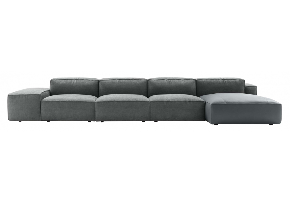 Cairoli designed by Nicoline is a sofa with structure in wood and plywood with metal support and seat with elastic straps. Seat cushions in eco-friendly polyurethane foam covered with a mixed feather mattress. Cover in fabric or leather, not removable. Feet in black thermoplastic material.