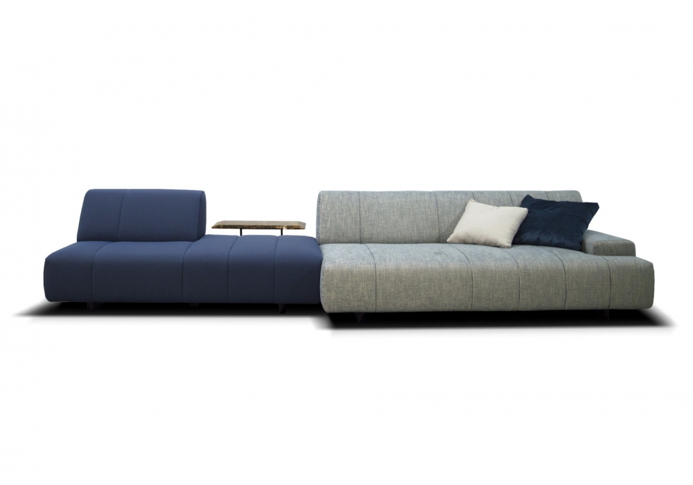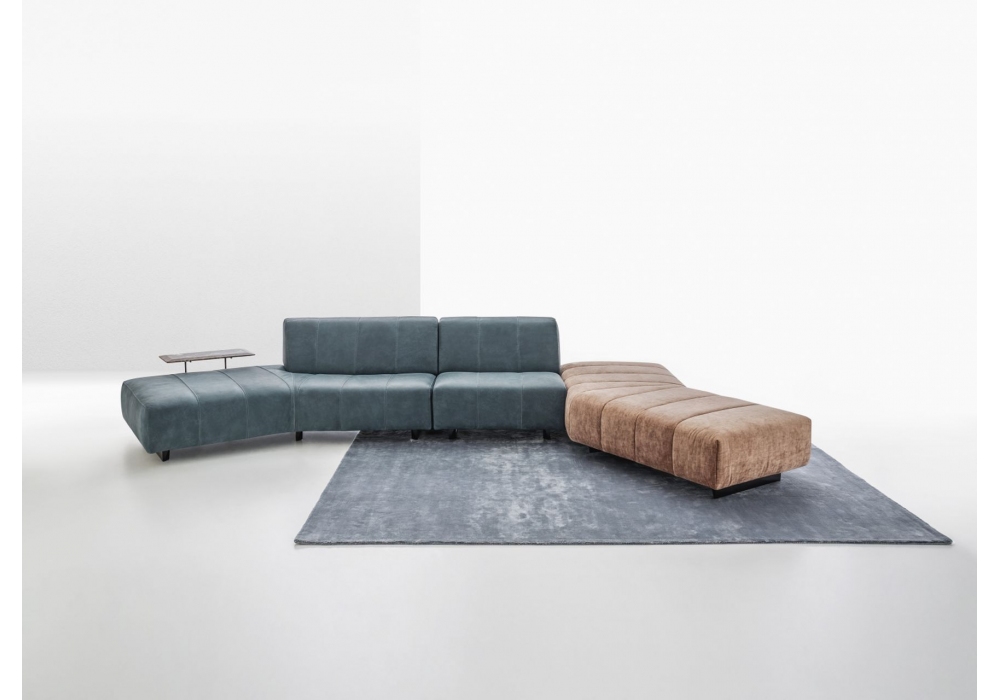 Zara designed by Nicoline is a sofa with structure in wood and plywood, seat and back springing with elastic straps. Padding in eco-friendly polyurethane foam with different densities, covered with tecnoform. Cover in fabric or leather. Feet in glossy black lacquered wood. Optional wooden coffee table elements.