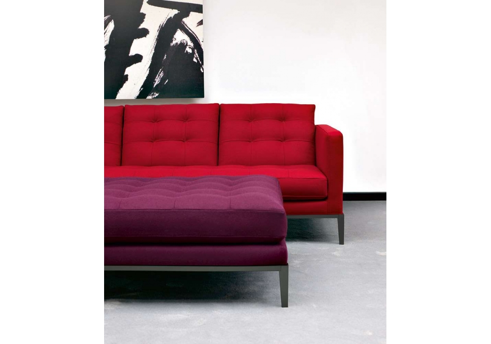 AC Lounge designed by Antonio Citterio for B&B Italia Project is a sofa with seat and backrest cushions padded in polyurethane of mixed density and polyester fiber. Base made of steel. Upholstery available in fabric or leather. Also available in 2 sizes: 2 or 3 seater.