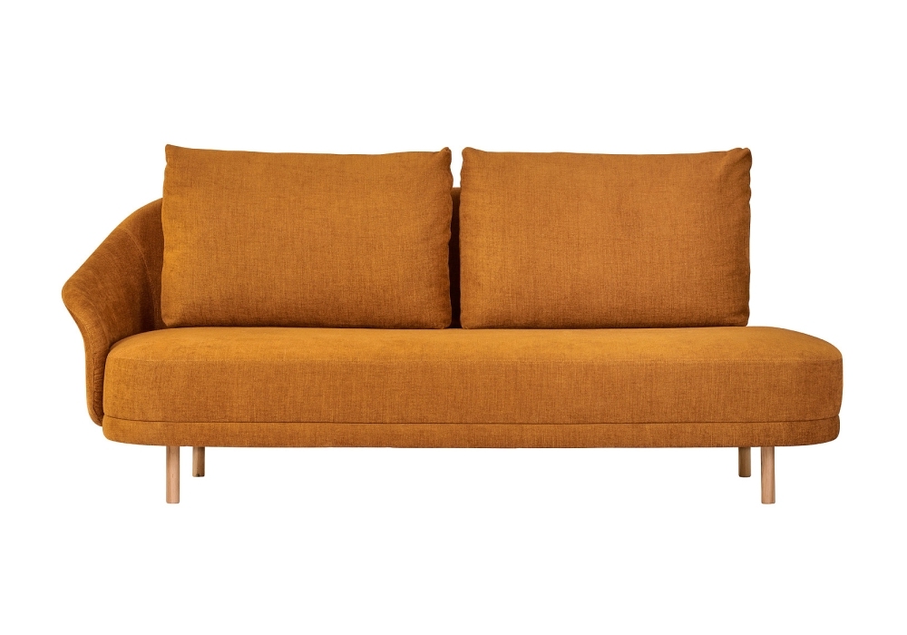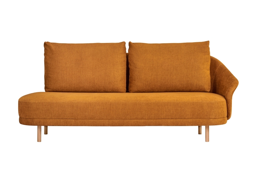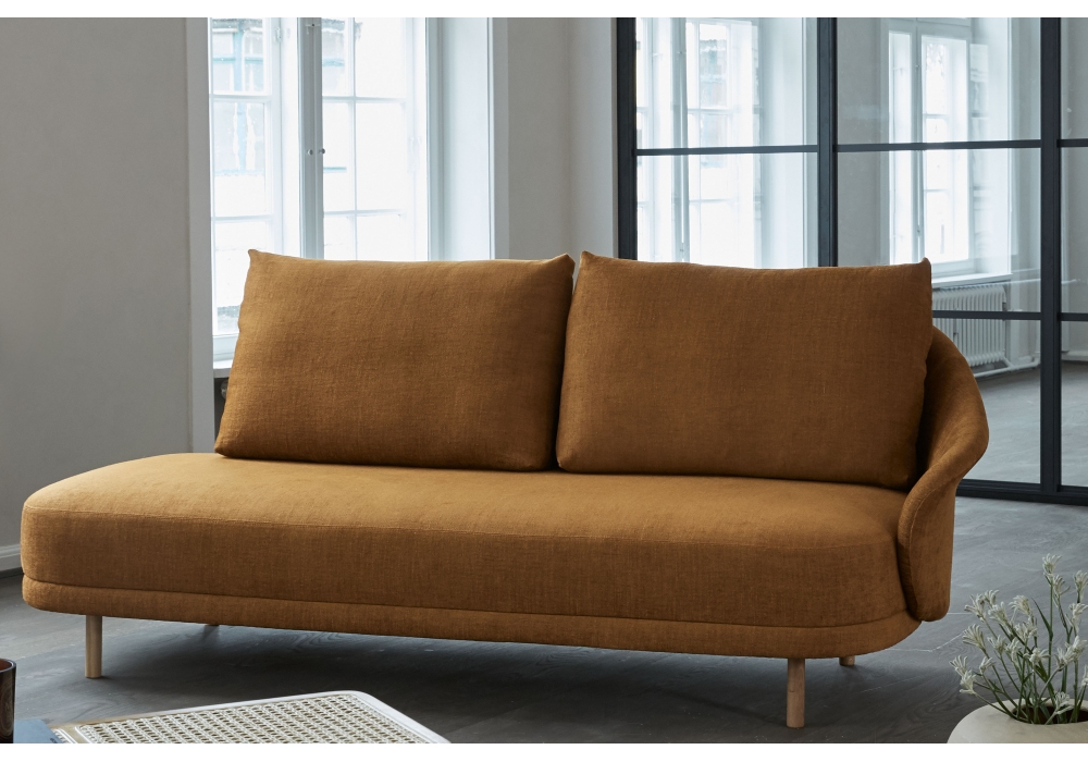 New Wave Open-End designed by Kristian Sofus Hansen and Tommy Hyldahl for Norr11 is a sofa with beech wood structure. Available with wooden legs in different finishes or in brass and fabric covering.