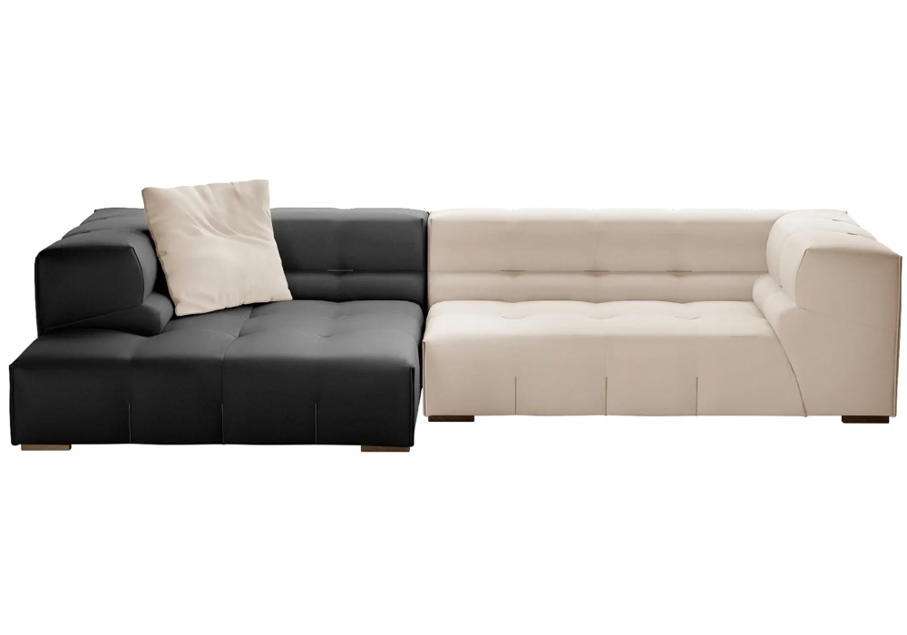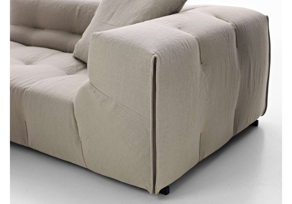Tufty-Too designed by Patricia Urquiola for B&B Italia is a modular sofa with an internal structure in tubular steel and profiles and padding in Bayfit® polyurethane. Upholstery in different fabrics or leathers with stitching and profiles in yarns in various finishes.