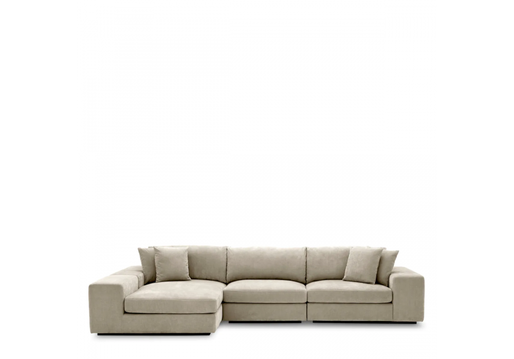 Vista Grande designed by Eichholtz is a sofa made with avalon white upholstery and black base. Available in different dimensions and finishes.