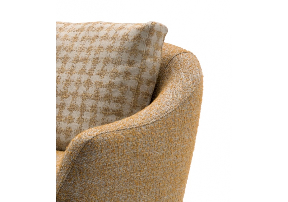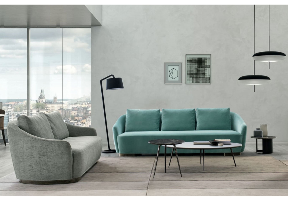 Kyoto designed by Giuseppe Manzoni for Bodema is a sofa made with a wooden structure covered in polyurethane foam and a base in black chrome or brushed brass metal foil. Removable cover in fabric, non-removable cover in velvet and leather. Available in different finishes and dimensions.
