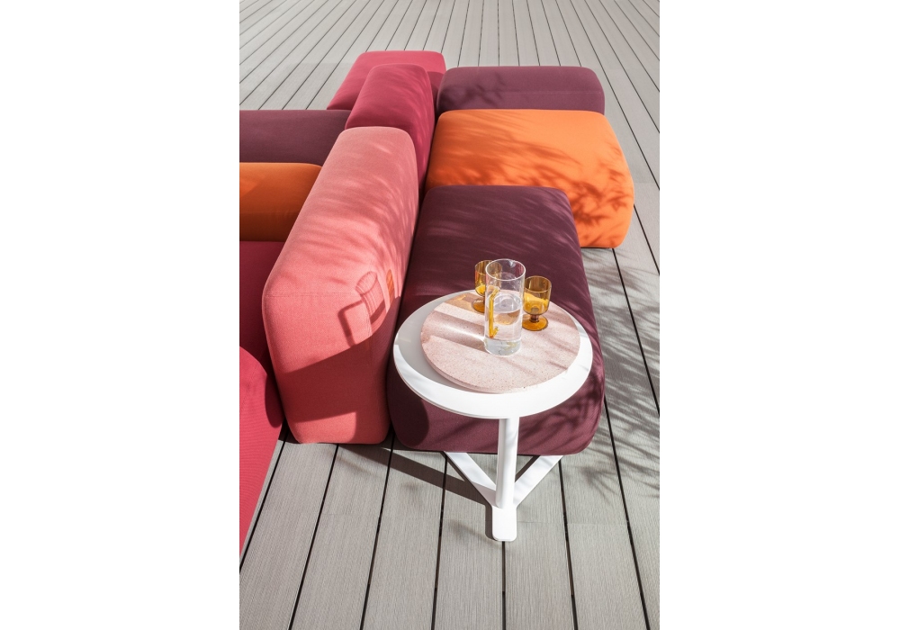 Plus designed by Francesco Rota for Lapalma is a modular system with completely removable covers, made up of seats, backrests, armrests and coffee table, in differentiated density fire retardant polyurethane foam and flame retardant polyester fiber coupled, covered in fabric, leather or eco-leather. The support frame is composed of a base in plywood with plastic springs and a perimeter tubular ring with slots, to house the die-cast aluminum brackets that connect the various components. PLUS is combined with the SCREEN divider system and OORT cushions.