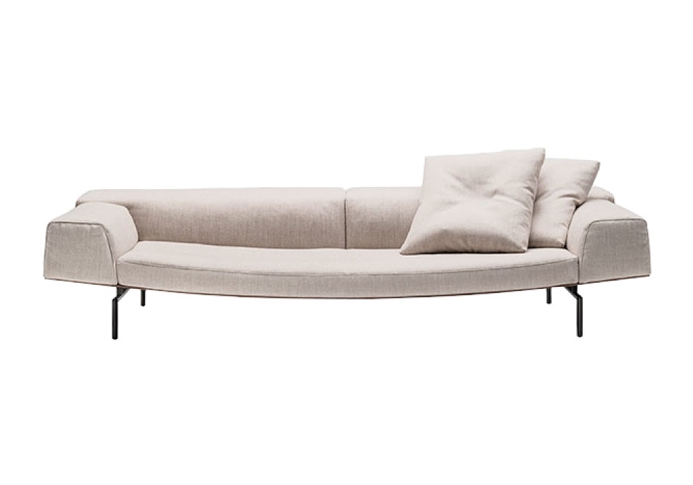 Sumo Curved designed by Piero Lissoni for Living Divani is a sofa with tubular steel structure, upholstered and padded with polyurethane foam. Armrests and backrest structure in poplar and fir wood. Upholstery in fabric or leather, both fully removable with zippers and velcro.