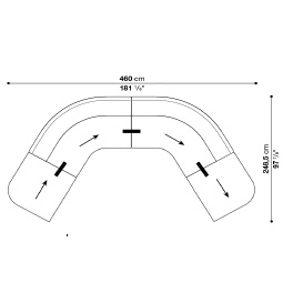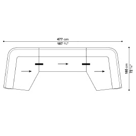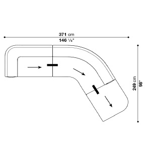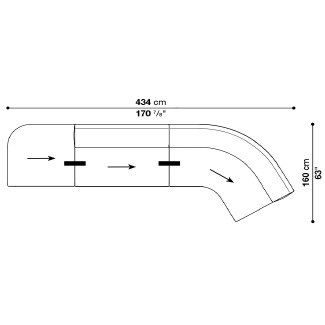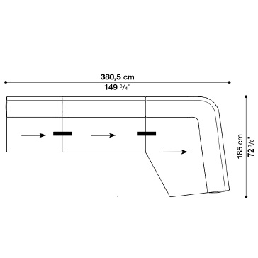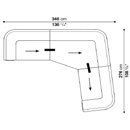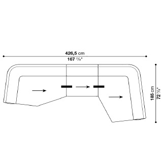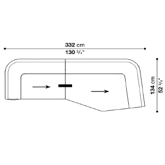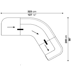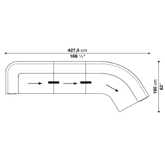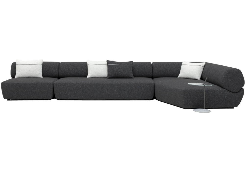 Naviglio designed by Yabu Pushelberg for B&B Italia is a modular sofa available in several configurations. This collection has many elements: chaise longue, pouf and linear, curved, terminal elements. This upholstered elements are made of Bayfit® (Bayer®) flexible cold shaped polyurethane foam, polyester fibre cover. Covering available in leather or fabric. This collection has a side table with transparent glass top, bronzed nickel structure and marble base.