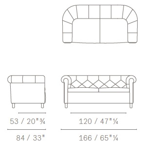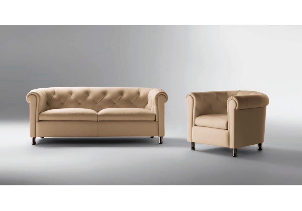 Softness and comfort are the main characteristics of this series of sofas, with a design that hints at a subtle closure of the armrests towards the inside of each piece. The frame is made from beechwood, the padding is made from polyurethane foam and resinate, while the cushions are made from polyurethane foam and feathers.